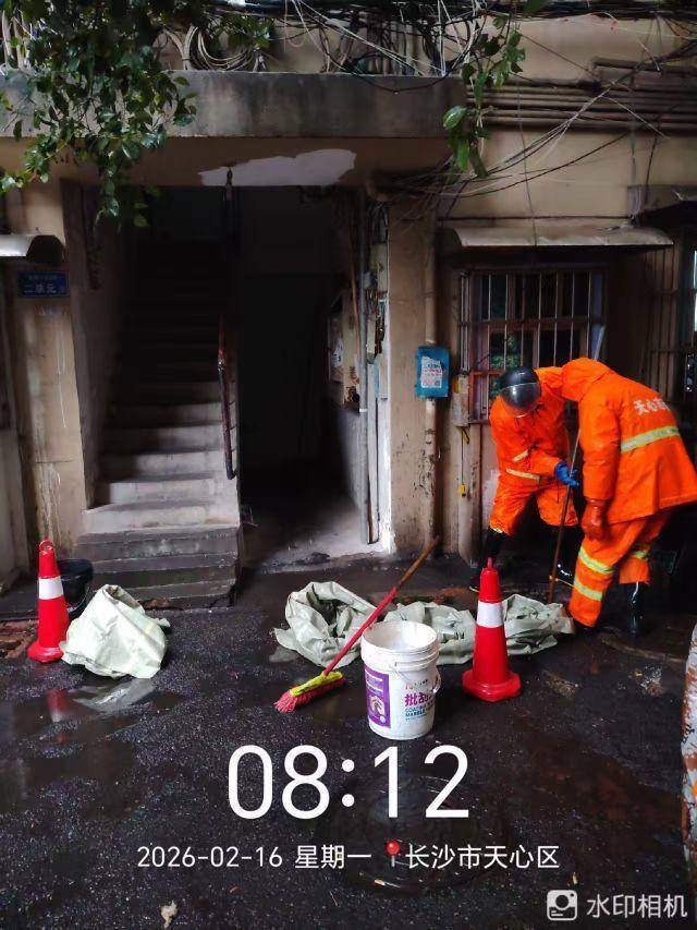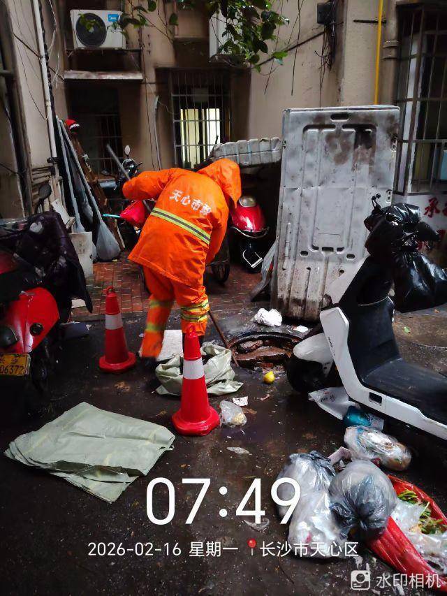 2月16日(除夕当天),天心区裕南街街道火把山社区富康小区2栋一单元化粪池井出现堵塞,给附近居民带来不便。该中心排水应急分队接到通知,杜义波队长带领应急值班人员第一时间进行清掏疏通,解决市民的实际困难。