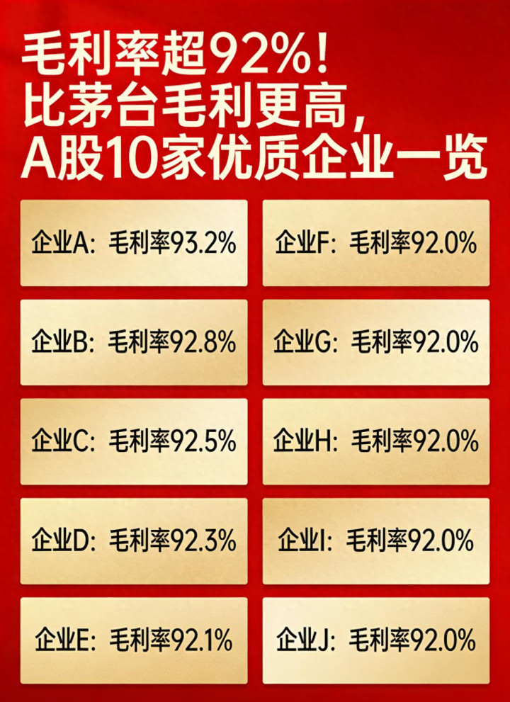 今天这篇文章,就带着大家一起,从公开、真实、可查询的财报数据出发,系统梳理A股市场上毛利率超过92%的10家优质上市企业。全文只做数据梳理、行业科普、商业模式讲解,不推荐股票、不做买卖指导、不夸大收益,所有内容都以客观、真实、正能量为原则,适合长期关注企业基本面的朋友认真看完。
